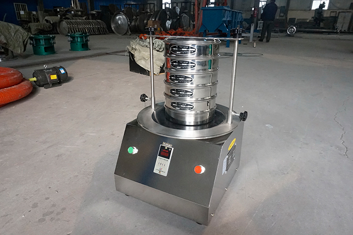 試驗篩機是以YZU立式振動電機作為整機振動源,通過振動電機帶動上部振動盤振動,再通過振動盤傳導至安放在振動盤上部Φ200篩框上,然后由需要檢測目數(shù)的篩框把小于篩網(wǎng)孔徑的物料顆粒篩分至下層篩框,如此層層篩選,使每層試驗篩內(nèi)只留相同粒度的物料,達到不同粒度的分離并確定此物料的粒度組成,使Φ200型篩框中的物料能非常有效的起到過濾、分級、篩分目的。